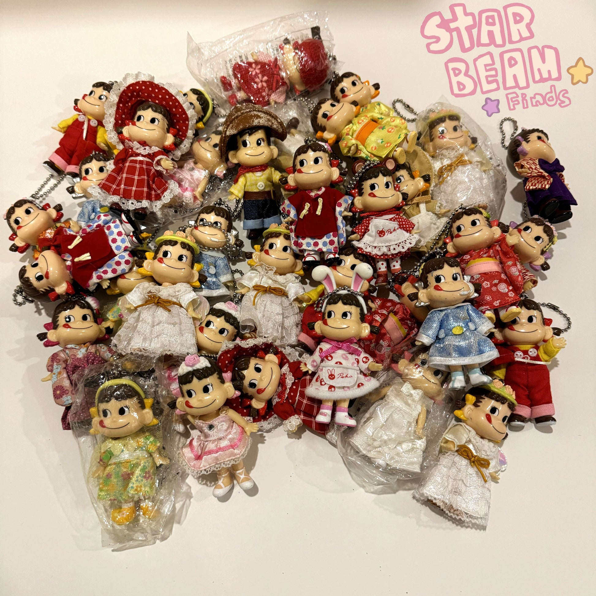 Get a random Peko Chan Keychain. Might have some damage due to age.